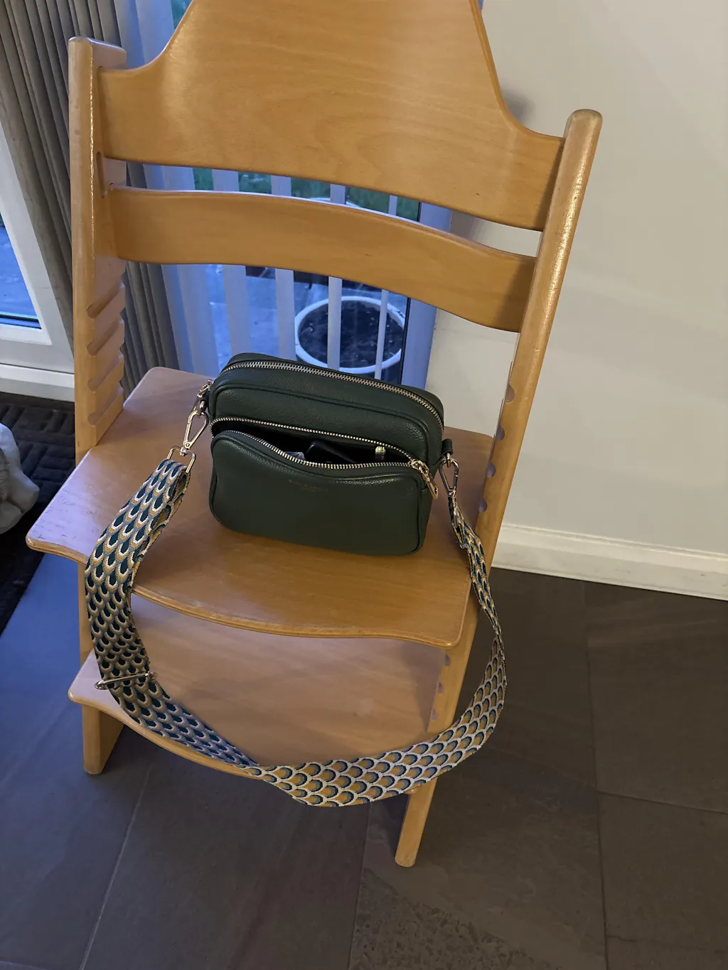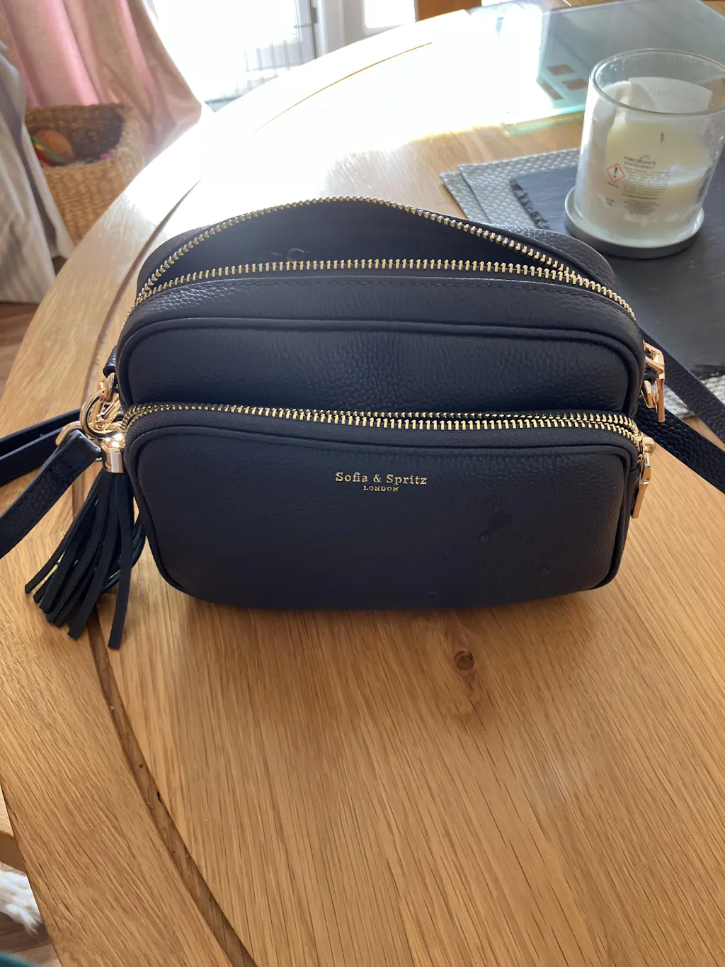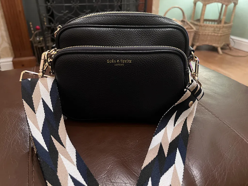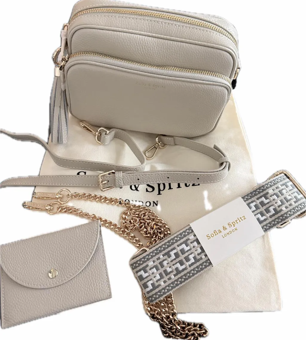 I'm really thrilled with my new crossbody bag from Sofia and Spritz! I wouldn't normally spend so much on a bag but I'm so pleased as it is such a versatile bag with a choice of 3 different straps, quality gold fittings and a little gold purse. It's s a perfect size for carrying essentials without being too bulky. I love the racing green colour and the fact that I can vary the straps according to preference. The gold chain one is particularly nice and I wore it for Mother's Day this year. I was surprised at the quality of the bag and the care which had gone into the packing and I think it's certainly worth what i paid. I've worn it nearly every day since buying it!.